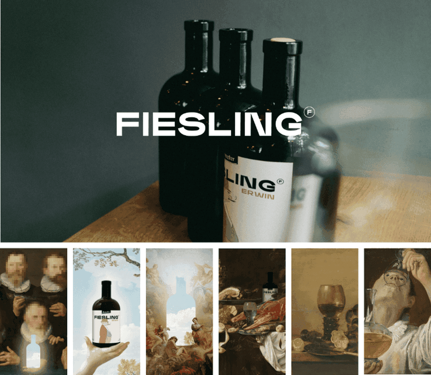 Die Bildwelt von FIESLING spielt mit klassischen Gemälden und barocken Kompositionen – und bricht sie gleichzeitig ironisch. Das Spiel mit alten Motiven, verpixelt oder inszeniert, spiegelt die Haltung der Marke: kultiviert, aber nicht elitär. So entsteht ein spannungsgeladener Kontrast zwischen Tradition und zeitgemäßer Rebellion.